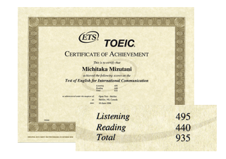 ハリファックスでの語学留学で自分の英語力がどれだけ向上したのかを試すために準備ゼロで受験しました。結果は合計935点(リスニングは満点でした。)