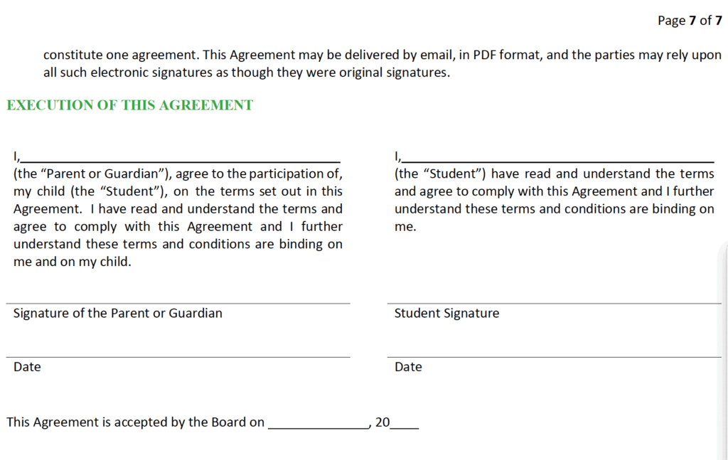 - 右列の I,_______(the “Student")には生徒本人の名前(ローマ字)をご記入ください。