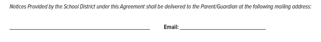 - 上記について理解をしたらSIGNATURE (Parent/Guardian)に保護者の署名を入れてください。Parent を丸で囲んでください。 2箇所ありますので、父親と母親それぞれの署名を入れてください。