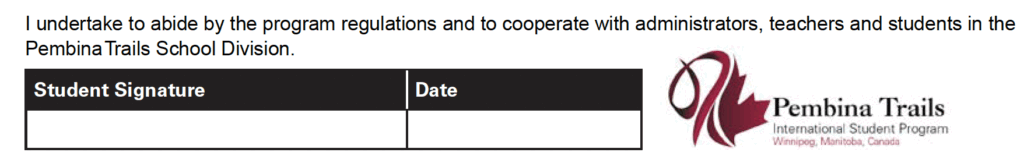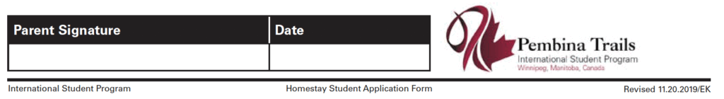 - Parents Signatureには保護者の署名を入れてください。署名はご自身のパスポートと同じ字体でお願いします。