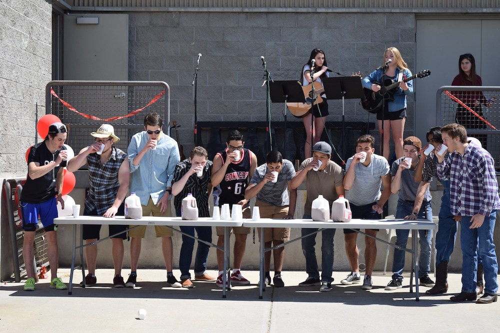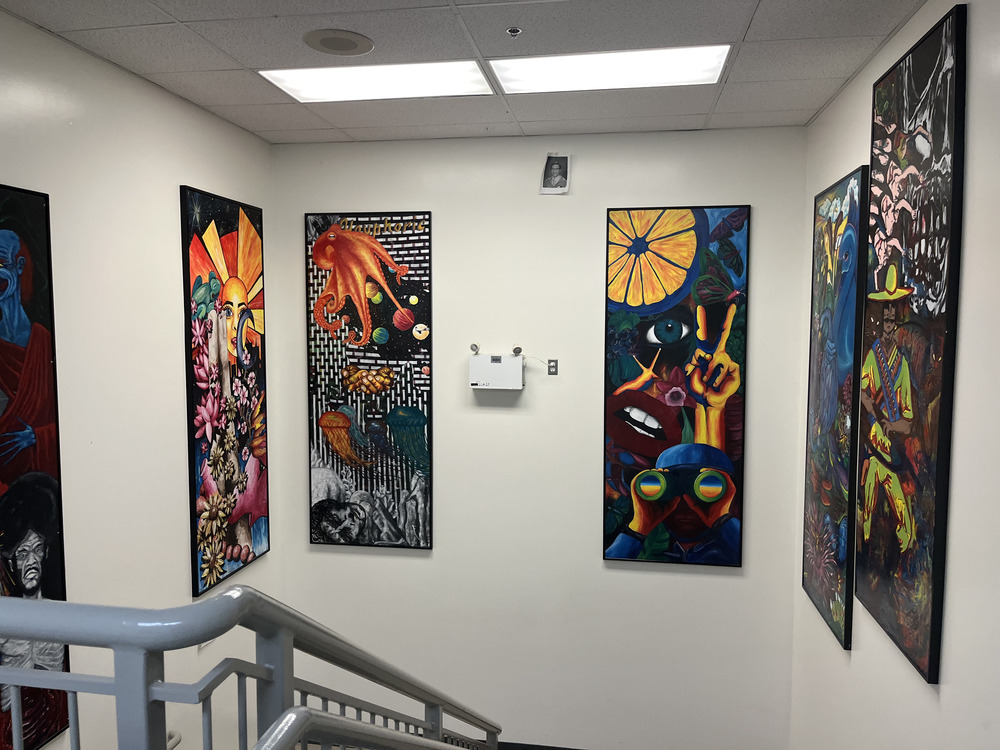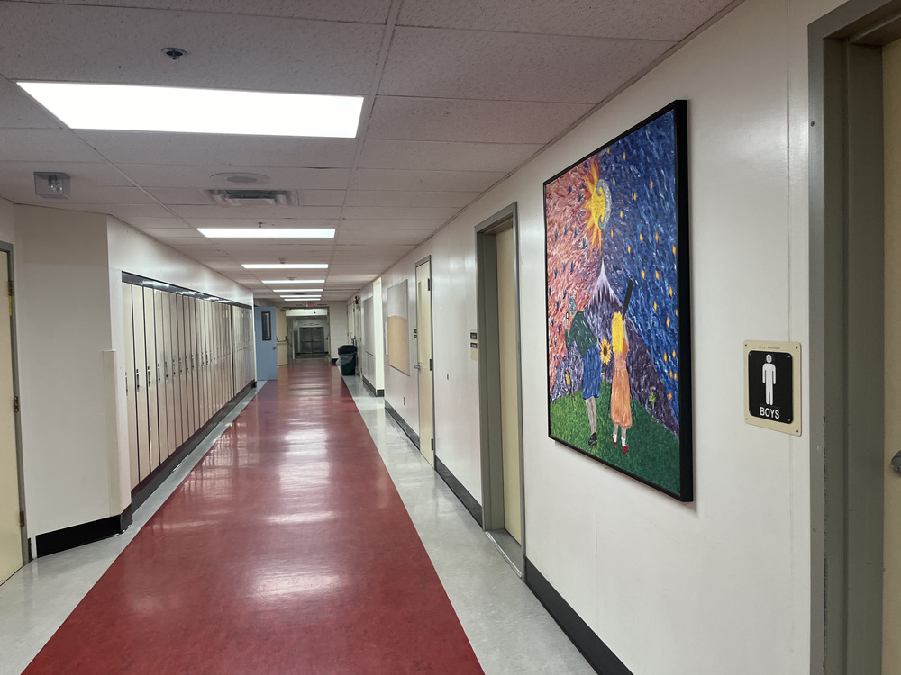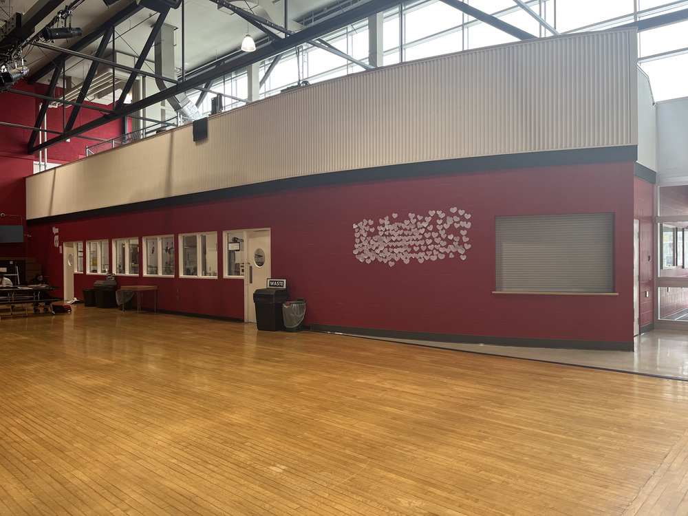 右側の赤い壁に gym (体育館)と書いてあります。ちょうど見えないですが、右側から体育館につながっています。