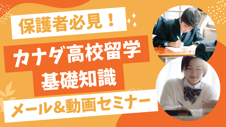 カナダでの中学高校留学を検討する保護者が必ず知っておくべき基礎知識をまとめました。無料のメールセミナーで、カナダの教育システム、学校の選び方、手続きの進め方、そして大事な卒業要件などについて知ってください。初めての方でも安心して読んで頂けるように大事なポイントを数回のメールに分けてお送りします!
