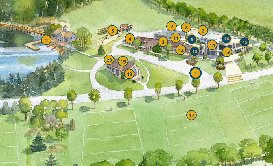 自然豊かな36エーカーのキャンパスには、学術、芸術、スポーツ、生活のための設備が揃っています。最新のビジュアルアートスタジオなど各種教室のほかにも、体験型授業の中心となるボートハウス、天然芝の競技場やトレイルが教育戦略のもとに配置され、よく手入れされ、学生たちに提供されています。