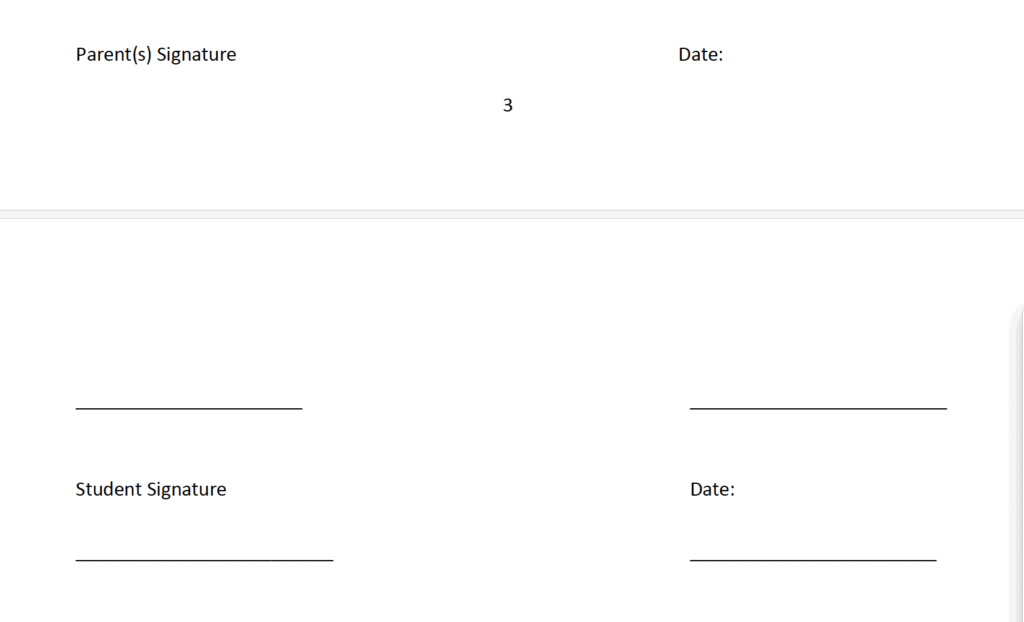 • 最初のアンダーラインにはStudent Signature 、生徒の署名を入れてください。署名はご自身のパスポートのサインと同じ字体でご記入ください。