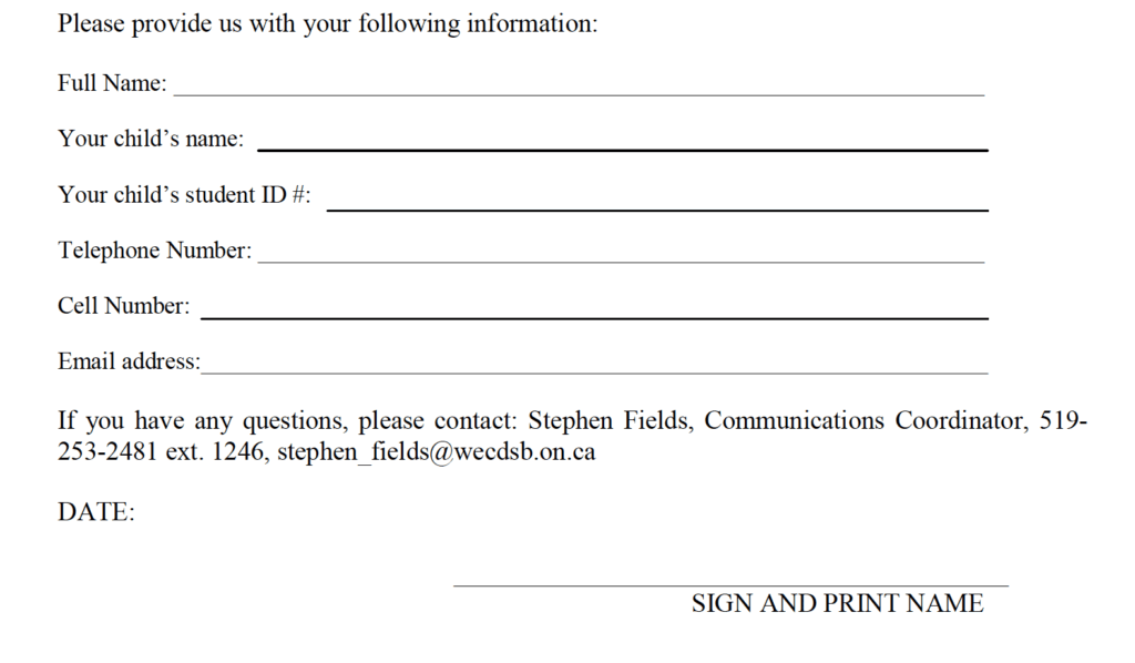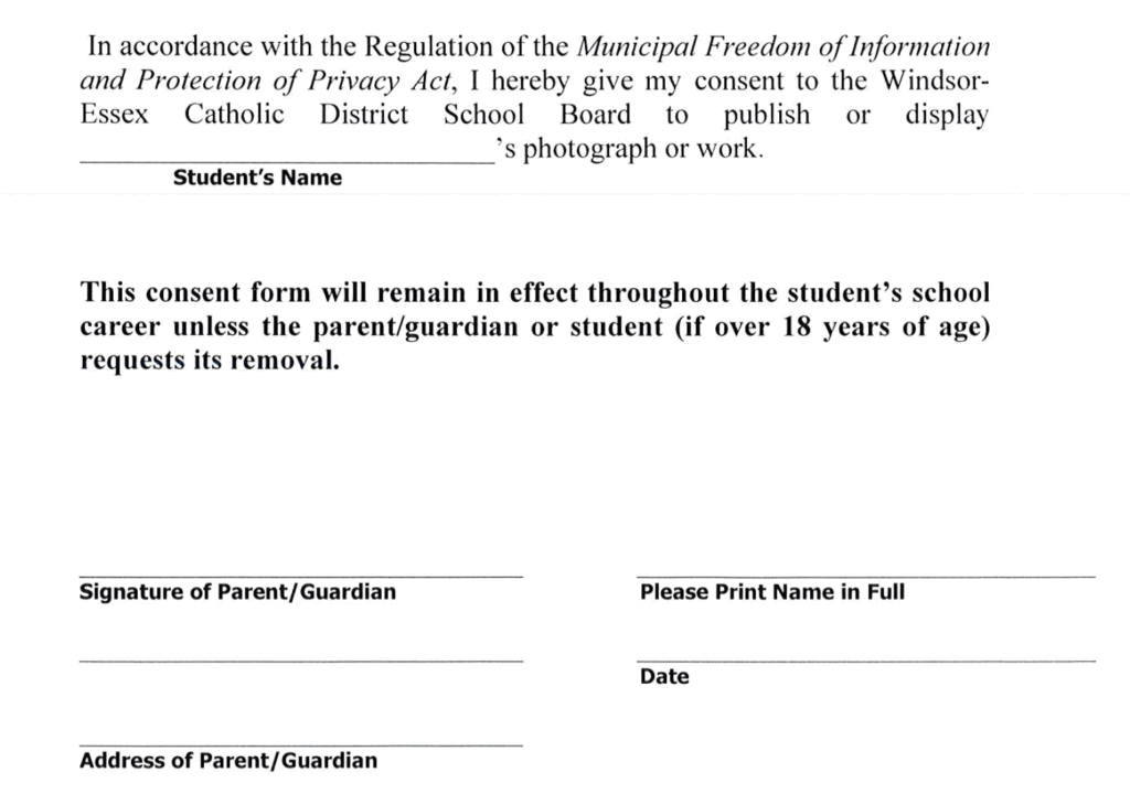 ウィンザーエセックス教育委員会では、以下のような電子メッセージを送信する際に、保護者の同意が必要です。